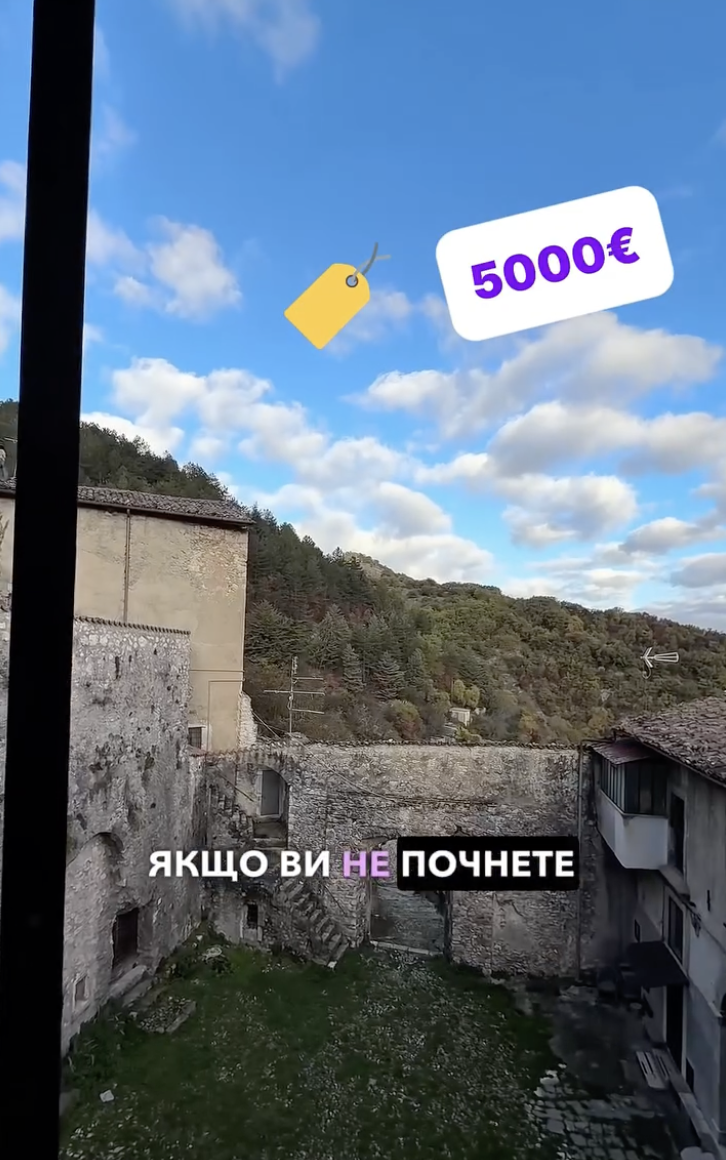 "Саме так пишуть мені під відео про те, що ми придбали власне житло в Італії. Будинок за ціною кави — пастка чи вдала інвестиція. Перше, ви купуєте не віллу, а аварійні стіни без даху та комунікацій. Друге, ви зобовʼязані внести гарантійний депозит від 5 до тисяч євро, який згорить, якщо ви не почнете ремонт негайно", — розповіла Тетяна.