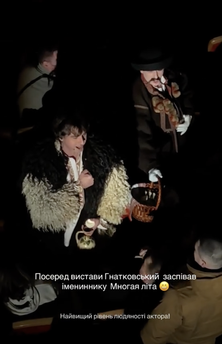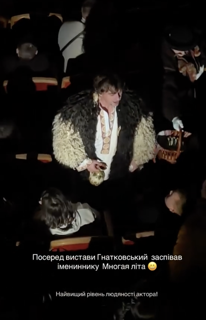 "Душевно. Олексій Гнатковський заспівав імениннику в глядацькому залі "Многая літа", — підписали ролик на фан-сторінці зірки "Довбуша".