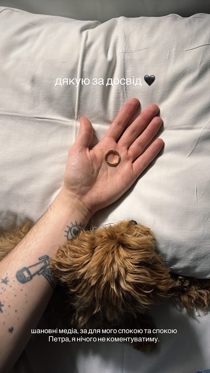 Він виклав світлину зі знятою з безіменного пальця обручкою, підписавши її "дякую за досвід".