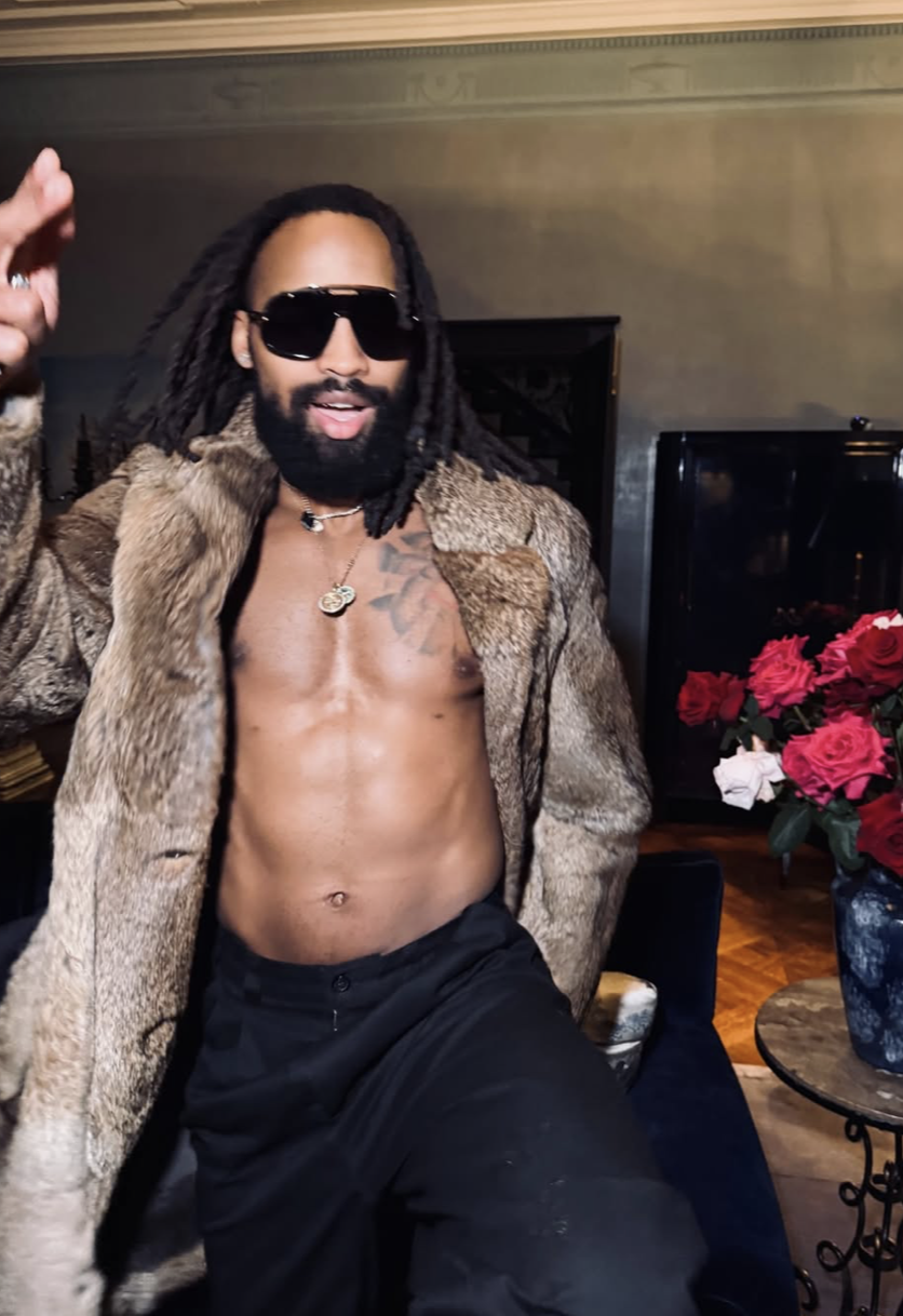 Окрім того, вона зазнімкувала Акіма Морріса в шубі та без футболки.