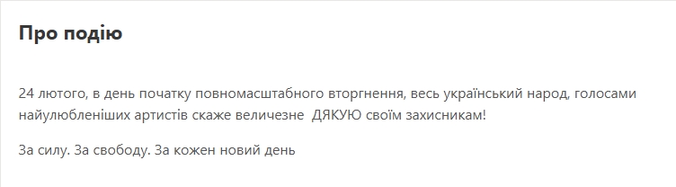 "24 лютого — день, який назавжди змінив кожного з нас. День, коли українці об’єдналися заради свободи, гідності та майбутнього", — сказано на афіші концерту. А в опису до події йдеться про те, що 24 лютого, в день початку повномасштабного вторгнення, весь український народ "голосами найулюбленіших артистів скаже величезне дякую своїм захисникам: "За силу. За свободу. За кожен новий день". Однак у суспільстві дата концерту викликала обурення. Все що відомо, зібрав Фокус.
