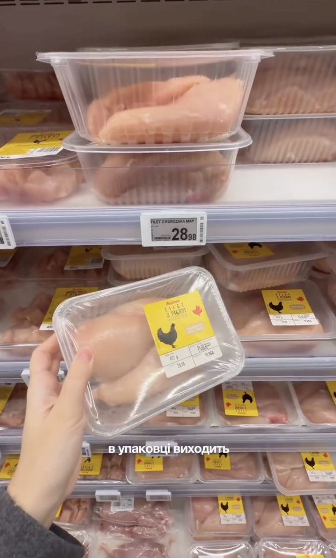 Мʼясо дорожче — куряча грудка 350 грн за кг, тоді як в Україні — 250.