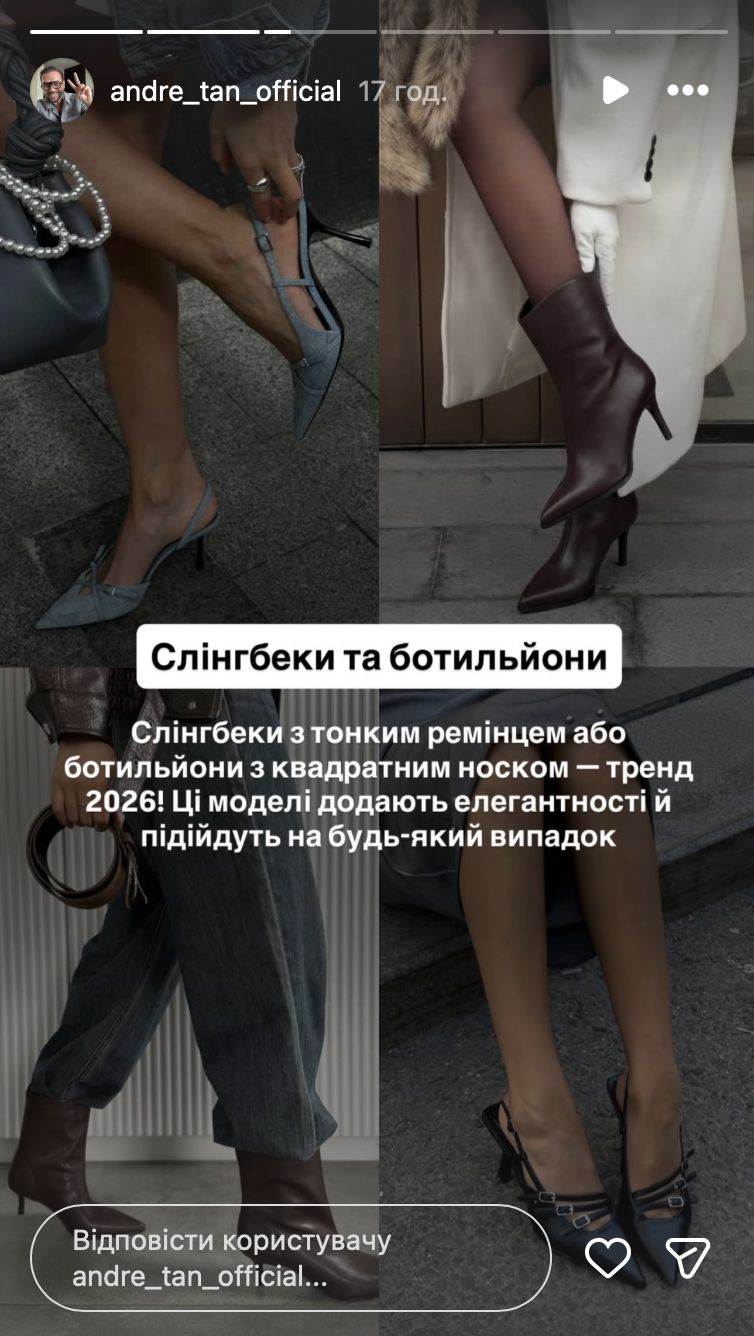 Український дизайнер Андре Тан розповів, на яке взуття потрібно звернути увагу навесні 2026 року, щоб бути у тренді.