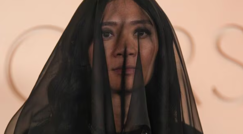 Режисерка фільму "Гамнет" Хлоя Чжао прийшла на церемонію у чорній сукні з прозорою чорною вуаллю та діамантовим намистом ювелірного дому "Булгарі". Образ виглядав стримано, продумано і тихо потужно — так само, як і сама режисерка.