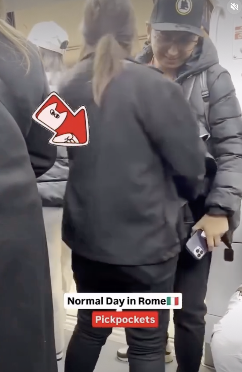 Блогер із ніком bilal_ragab1 опублікував відео, яке показує типову схему кишенькових крадіжок у Римі. Інцидент стався в метро і демонструє, як злодії діють у натовпі, залишаючись майже непомітними.