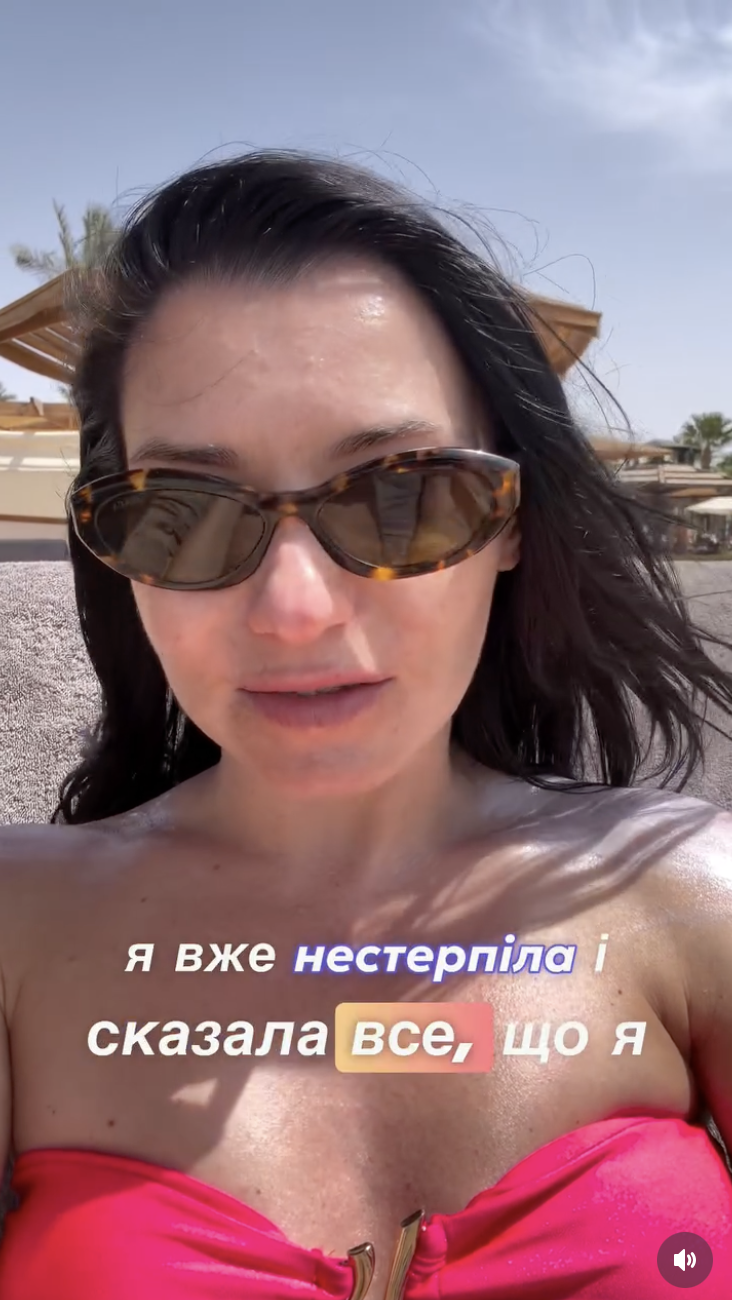 "Сьогоднішня моя сторіс не про погоду, бо погода сьогодні в нас нарешті чудова, сонячна. А про г**норотих. З самого ранку я мала неприємну сутичку з представниками сусіднього народу. На обличчях, звісно, було написано, хто звідки. Але коли вона відкрила вже свого чорного рота і вирішила по їхній традиції окуповувати територію на пляжі, де вже відпочивали мої діти, я вже не стерпіла і сказала все, що я думала", — розповіла авторка відео.