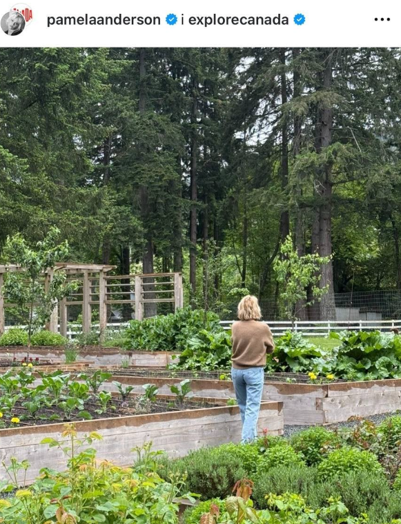 Біля будинку Памела Андерсон влаштувала город, де вирощує овочі, зелень і квіти. Зірка сама, доглядає за грядками та садом приділяючи особливу увагу екологічному способу вирощування рослин.