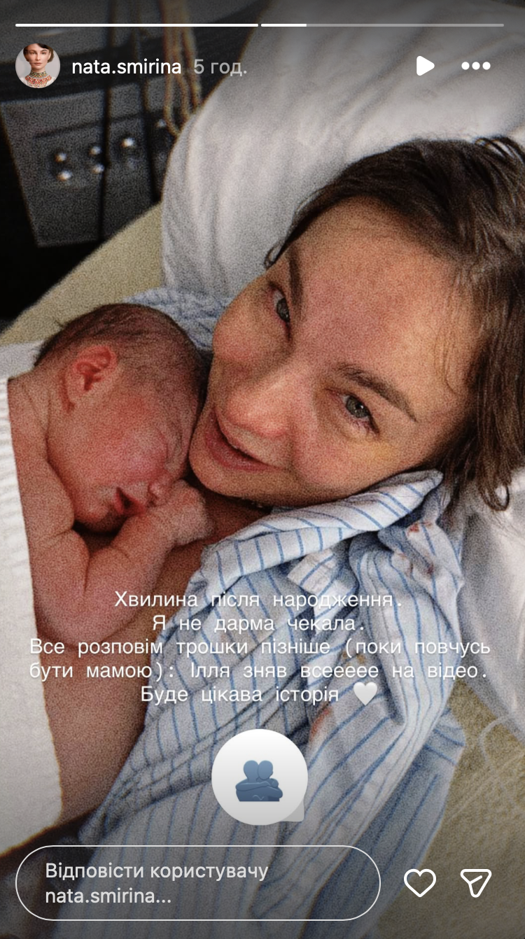 Новиною про поповнення виконавиця поділилася в Instagram (nata.smirina) та показала перші фото з малюком. У зірки Нацвідбору народилася донька, яка вже отримала імʼя Лія.