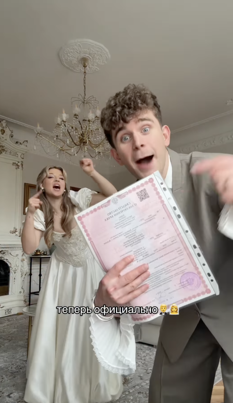 Вони зареєстрували шлюб у Санкт-Петербурзі. За словами блогера-зрадника, саме весілля вони святкуватимуть вже влітку.