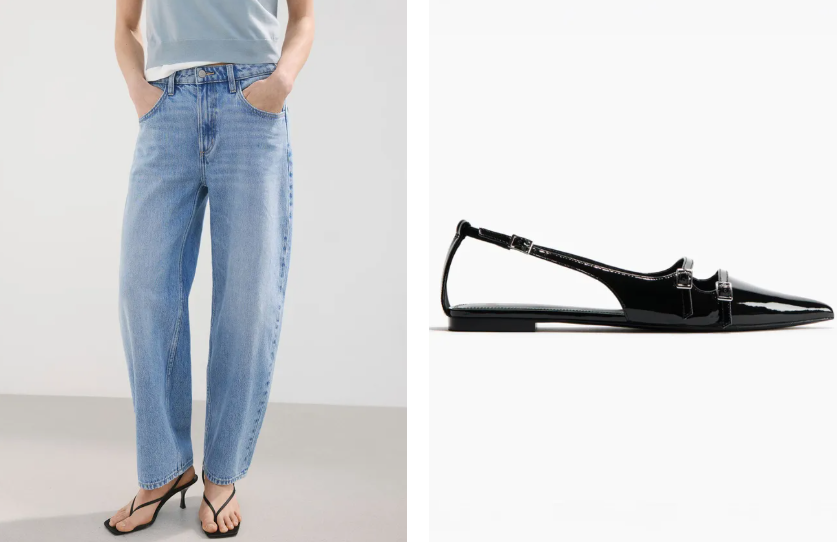 Ідеальні поєднання "бабусиних" джинсів із взуттям на плоскій підошві