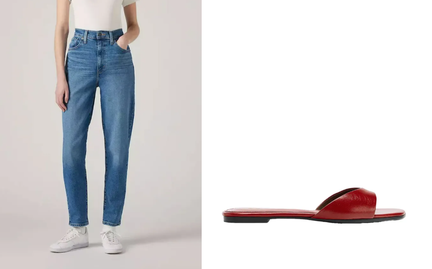 Ідеальний варіант для теплих днів. Простота сандалів врівноважує силует джинсів, створюючи чистий і невимушений стиль.