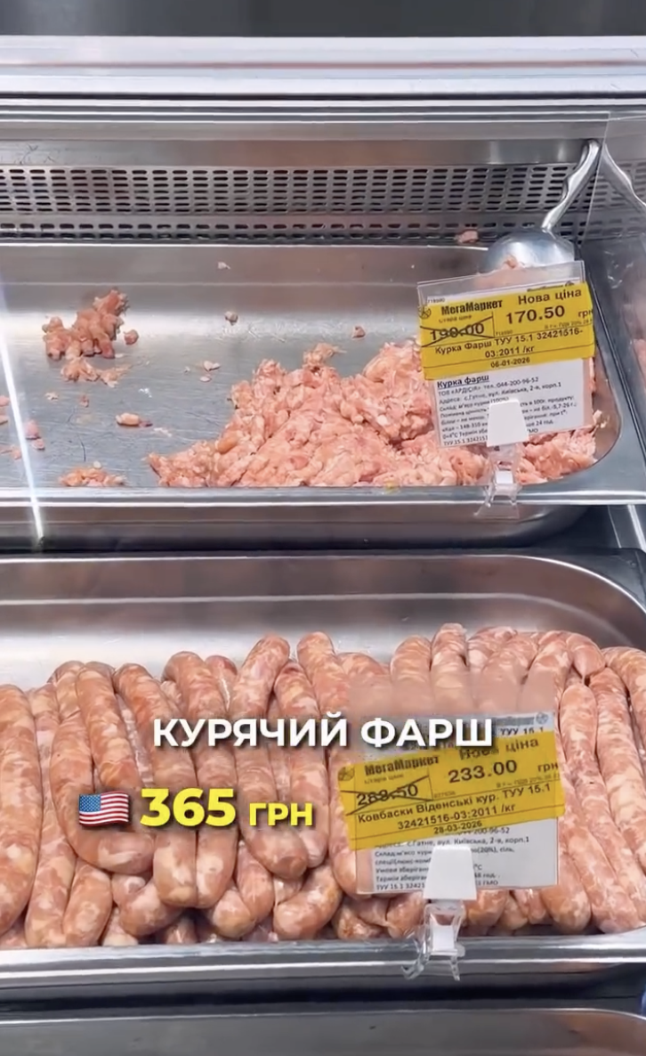 - курячий фарш — 365 грн в США, 170 — в Україні.