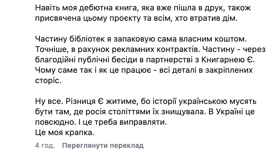 Блогерка також наголосила, що частково фінансує ініціативу самостійно та через партнерства. Вона підкреслила, що проєкт має культурну мету і триватиме: "Різниця Є" житиме, бо історії українською мусять бути там, де Росія століттями їх знищувала".