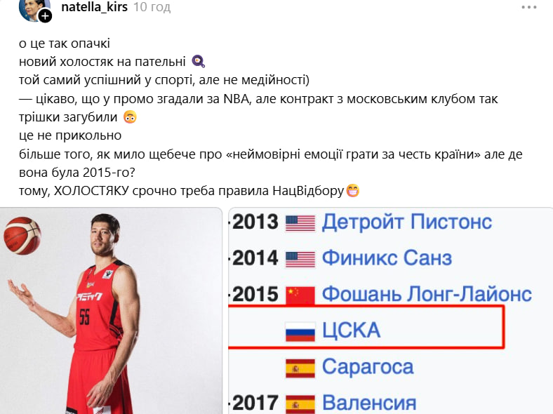 "Цікаво, що у промо згадали за NBA, але контракт з московським клубом так трішки загубили. Це не прикольно", — зазначила блогерка.