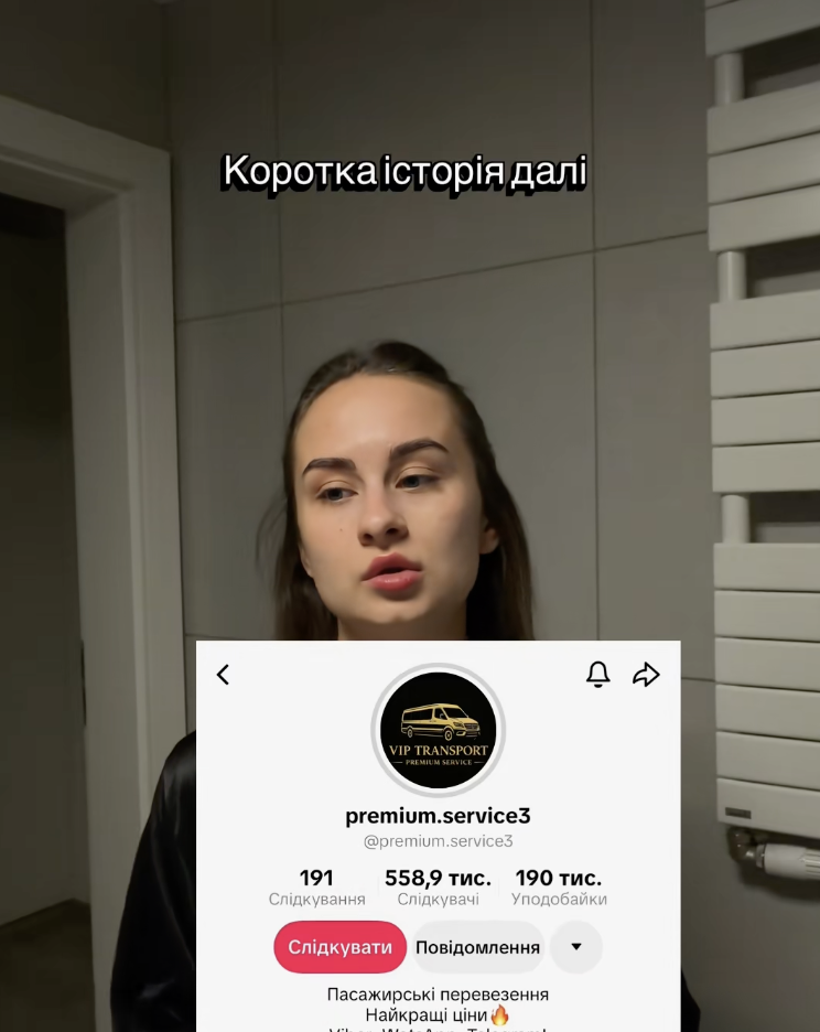 "Сьогодні я віддала гроші шахраям. У них дуже багато підписників в TikTok, дуже багато переглядів, коментарів. Я, мабуть, не одна така. Люди на це ведуться. Я планувала їхати в Україну, купила собі перший раз не потяг, а трансфер. Думаю: шикану, куплю собі трансфер. Вислала їм передплату (2500 грн)", — почала дівчина.