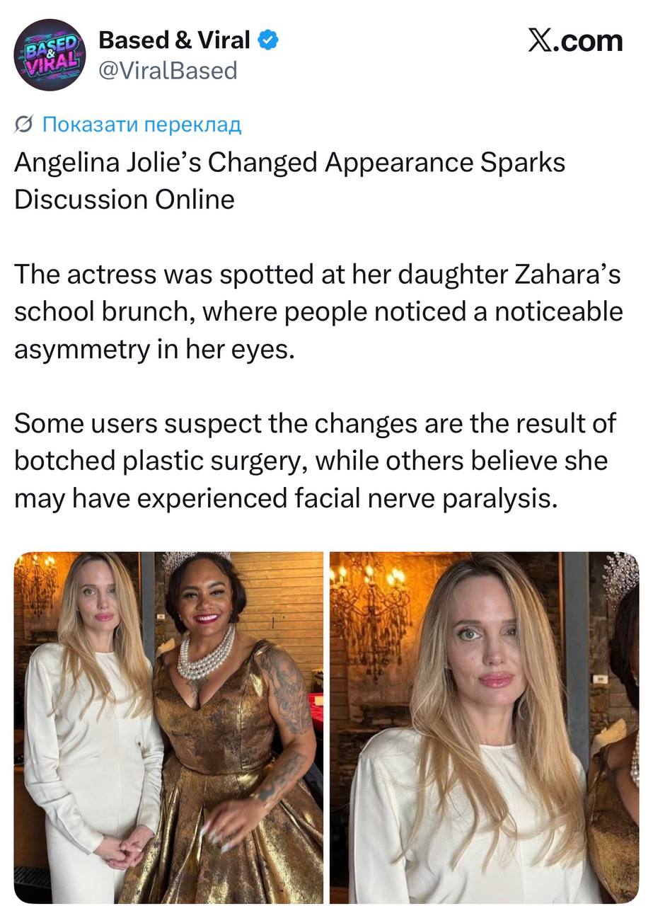 Зірка знову стривожила змінами в зовнішності. На обличчі Енджі помітили асиметрію очей: одне виглядає більшим за інше, яке Джолі спробувала прикрити пасмом волосся. Фото ширяться в мережі.