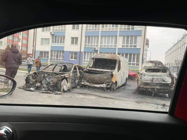 Вогонь сягав висоти триповерхового будинку. За півгодини згоріли три автомобілі, четвертий постраждав частково, власник п'ятої машини врятував її, коли полум'я вже торкалося бампера. Страшно було не тільки власникам машин, адже від вогнища загоряння до житлового будинку було всього майже три метри.