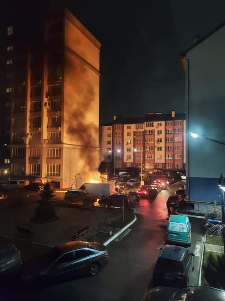 У ніч на 14 квітня мешканці ЖК "Львівського" в Петропавлівській-Борщагівці Київської області, зокрема і я, стали очевидцями страшної пожежі. За неофіційною версією, невідомі підпалили припаркований між будинками BMW. Полум'я досить швидко перекинулося на сусідні машини.