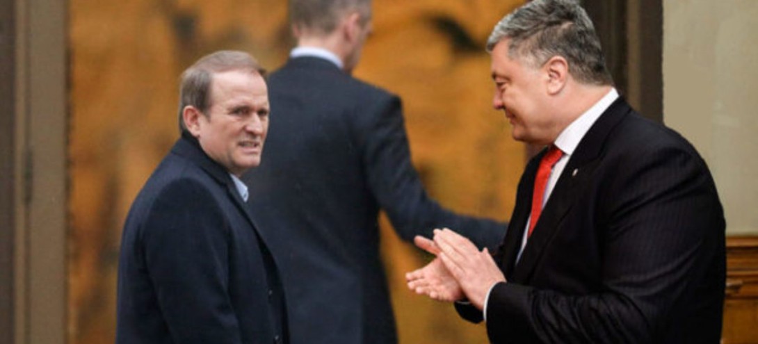 Тепер про Медведчука. По суті Медведчук виступає антитезою Порошенка. Це політичні близнюки-брати, лише з протилежними знаками. Як електрон і позитрон. Усе, що сказано про Порошенка, можна повторити і про Медведчука.
