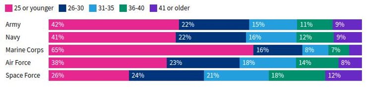На картинці — середній вік американської армії за категоріями і родами Збройних сил. Вони ж діти!