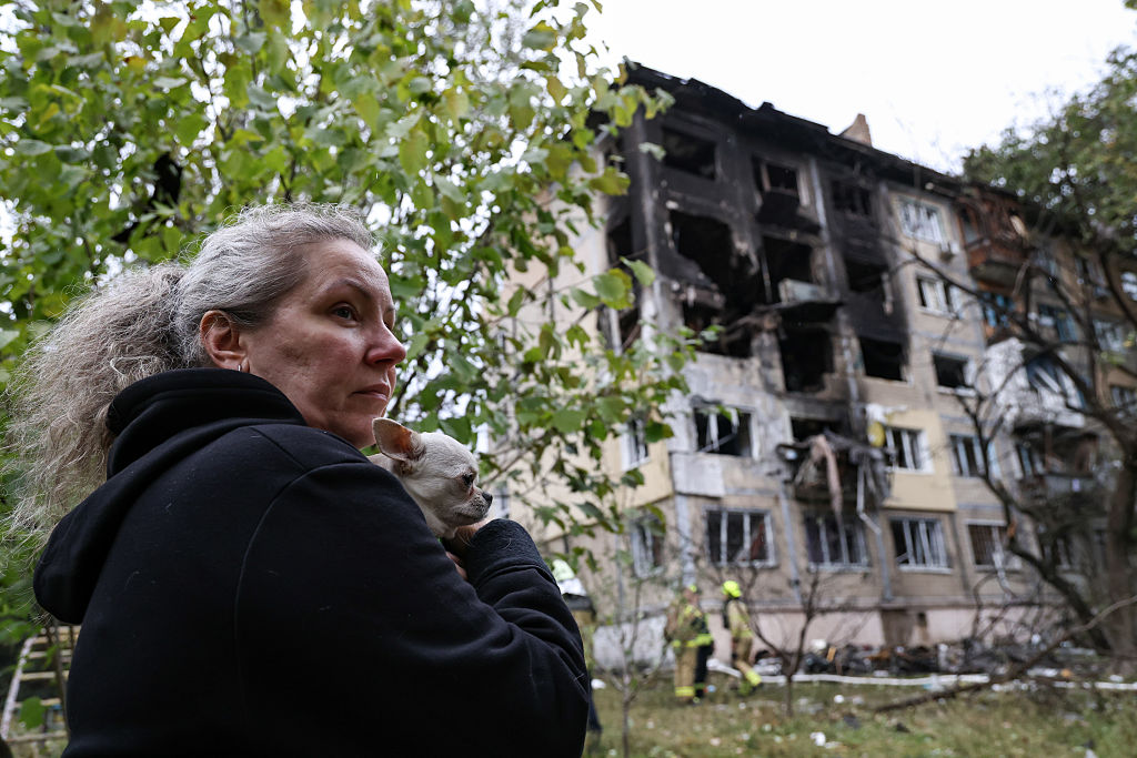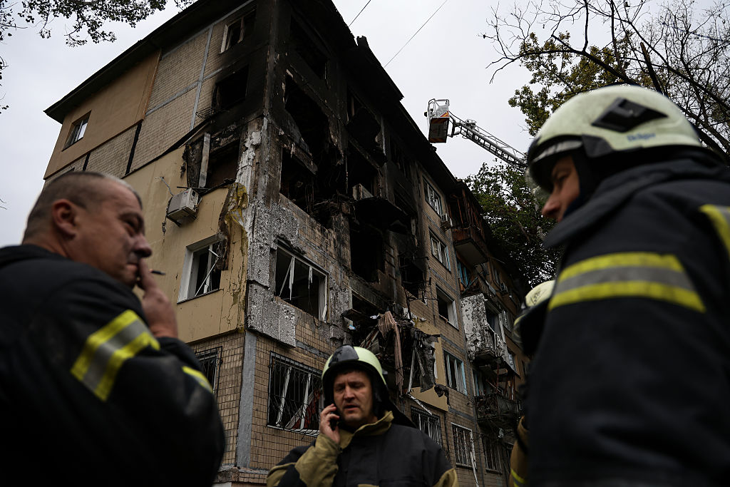 Зруйновані житлові будинки під час російського авіаудару в Києві 28 вересня. Загинули щонайменше четверо людей, зокрема 12-річна дівчинка | Фото: Getty Images