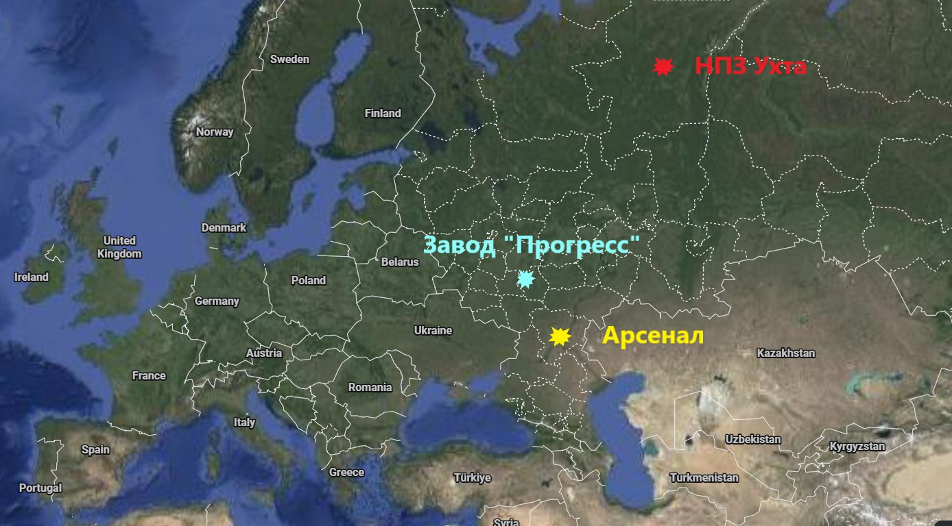 Але найбільш видовищний перфоманс організував ЦСО "А" СБУ. Дрони Служби безпеки України дотягнулися до НПЗ "Лукойл-Ухтанафтопереробка" в Республіці Комі.