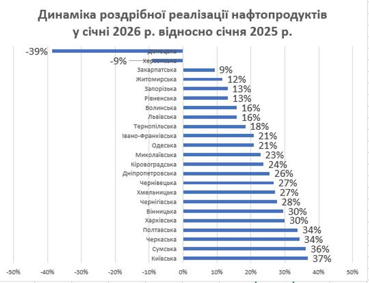 Найменше — на 9% — збільшилися продажі пального на Закарпатті (20,3 млн л). У Дніпропетровській і Львівській областях, які входять у топ 3 за проливами, реалізація зросла на 26% і 16% відповідно.