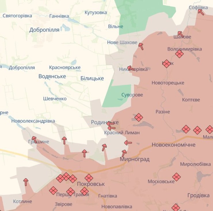 Наразі російське командування зосередило свої зусилля в смузі 2-ї ЗВА, намагаючись прорватися на ближні підступи до Добропілля з півдня, діючи переважно в напрямку Покровськ — Гришине.