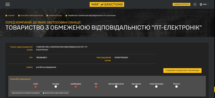 Ба більше, український портал ГУР МО War & Sanctions щодо тієї ж компанії вказує серед санкційних юрисдикцій не лише США, а ще Канаду, Швейцарію, ЄС, Велику Британію, Австралію, Нову Зеландію та Японію. Тобто, ми говоримо не про «сумнівну репутацію» в абстрактному сенсі, а про суб’єкт, який уже потрапив на міжнародну санкційну орбіту через зв’язок із постачаннями для російського військово-промислового комплексу.