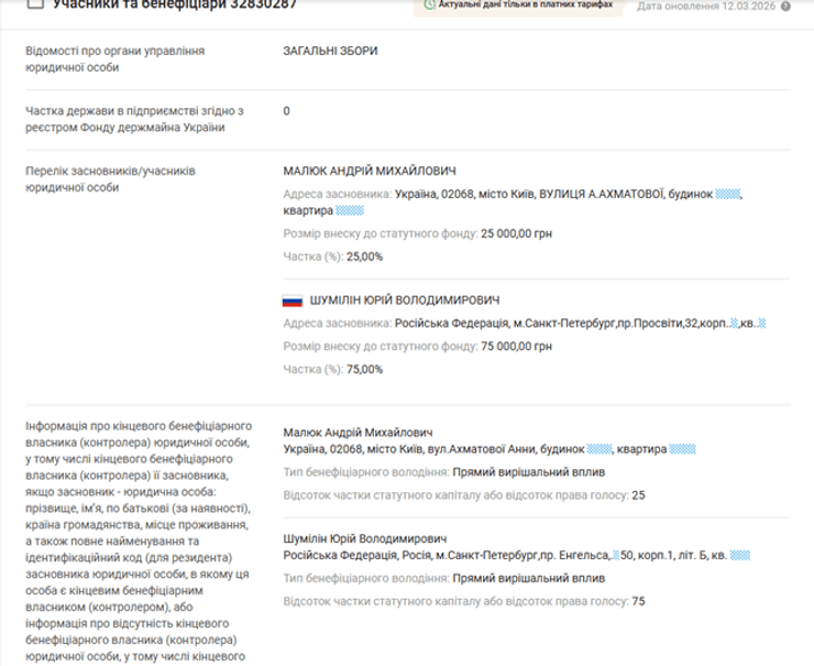 Але чому відхилили? У поясненні йдеться про «невідповідність репутації». А тепер дивимось, хто цей «дешевий» учасник. Це ТОВ «ІНКОМТЕХ ПРОЕКТ». Власник 75% компанії – громадянин РФ Юрій Шумілін.