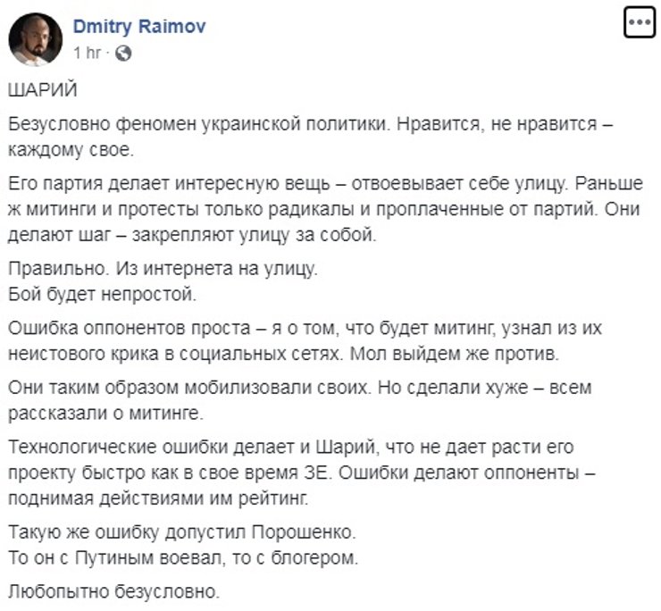 У свою чергу політтехнолог Дмитро Раїм вказав на помилки опонентів Анатолія Шарія, які допомагають йому ставати відомим і залучати нових прихильників.
