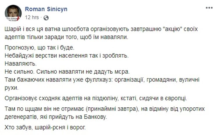 У соцмережах заклики піти і "розігнати" акцію прихильників Шарія з'явилися практично у всіх пабліках націоналістичної спрямованості. Причину пояснювали просто: Шарій — ворог України, ніяких зборів його імені бути не може, а ті, хто прийдуть на акцію "отримають по щщам".