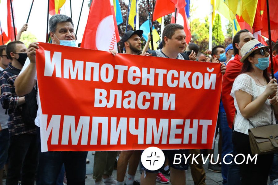 Прихильники партії Шарія прийшли з національними прапорами України і символікою політсили. Тримали плакати з гаслами "Імпотентської влади імпічмент", "Не можеш? Іди!", "Навіщо став президентом?", "Вова, йди", "німий президент". Останнє гасло також стало однією з основних "кричалок" учасників акції, дії яких координували керівники регіональних осередків партії.