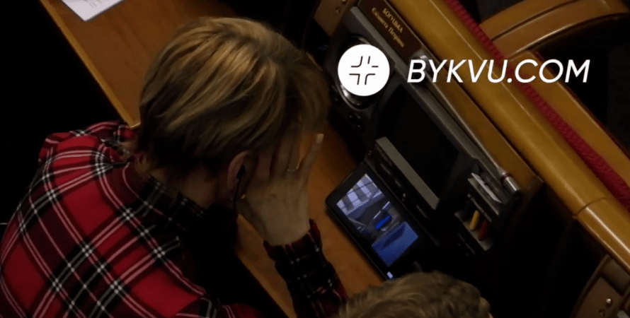 Під час голосування на позачерговому засіданні Верховної Ради народна депутатка України Єлизавета Богуцька, яка є членкинею фракції "Слуга народу", дивилася на телефоні фільм.