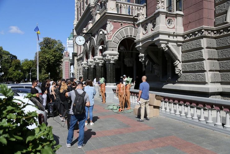 Під НБУ відбувається акція протесту ветеранів АТО-ООС проти платіжної системи Globalmoney, яка, на думку учасників акції, всупереч українському законодавству співпрацює з банками РФ і незаконними фінансовими установами ОРДЛО, повідомляє dsnews.ua