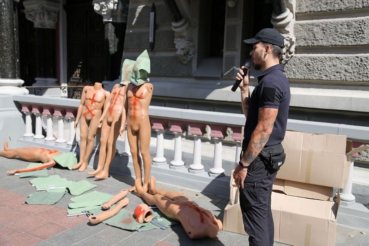 Учасники акції розгорнули плакати "Вимагаємо заборонити роботу з ОРДЛО та РФ!", "Global24 – кривавий гаманець апалченця!", "Припиніть фінансування "ЛДНР"!", запалили файери і періодично скандують "Глобалмані — бізнес на крові! Глобалмані — геть до Москви!", повідомляє dsnews.ua.