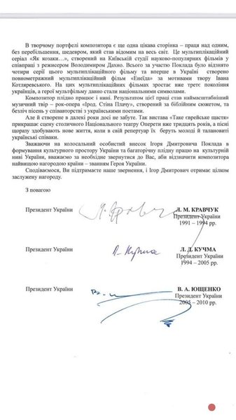 Зазначимо, що 5 грудня президенти України Леонід Кравчук, Леонід Кучма та Віктор Ющенко звернулися до Зеленського з проханням надати композитору звання Героя України з нагоди майбутнього ювілею.