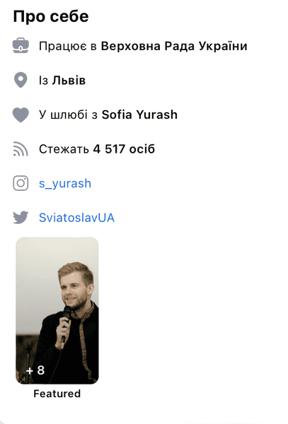 Зазначимо, що Facebook-сторінках Юраша та його колишньої коханої збереглася відмітка про те, що вони перебувають у шлюбі.