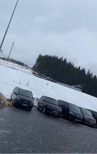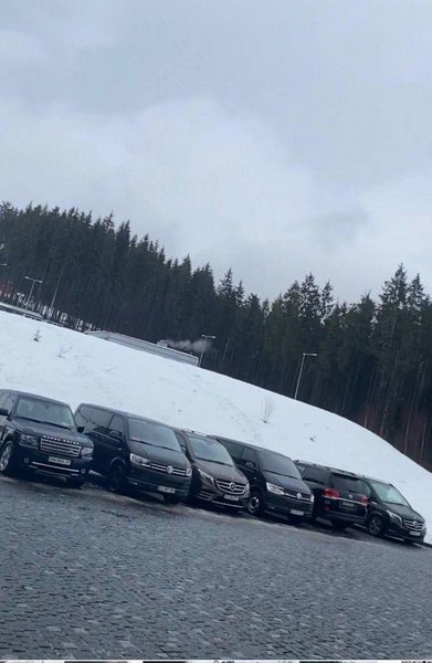 Журналісти також опублікували фотографії паркування біля готелю, на яких видно кілька мікроавтобусів та позашляховиків.