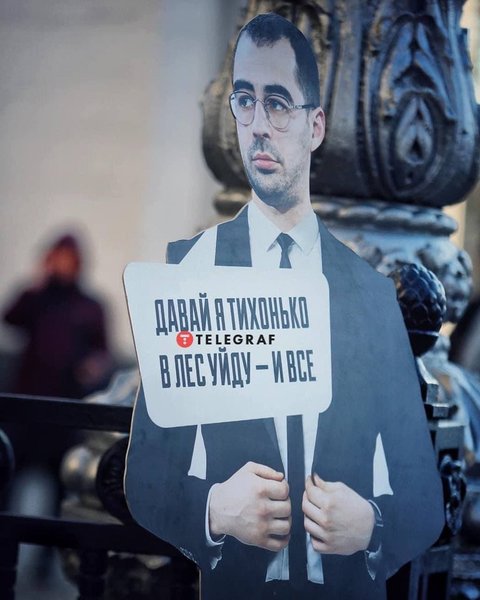 Автори ідеї додали до портрета табличку з фразою "давай я тихенько в ліс піду – і все". Це висловлювання політика з відео розслідування журналістів "Української правди" щодо ДТП за його участю.