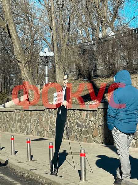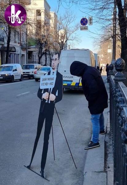 Картонний банер із фігурою нардепа виставили на узвозі вулиці Грушевського.