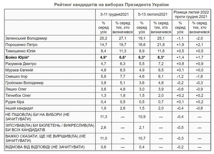 Тільки Бойко додав статистично значущий відсоток, оскільки різниця із грудневим показником перевищує статистичну похибку.