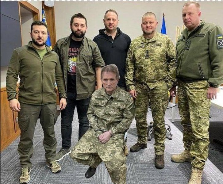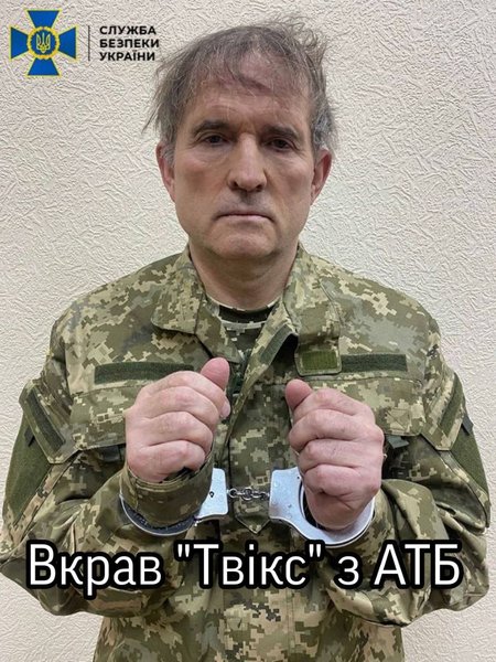 Президент України Володимир Зеленський увечері 12 квітня повідомив про проведення операції із затримання нардепа від "Опозиційної платформи — За життя", кума президента Росії Віктора Медведчука. Він опублікував фотодоказ — Медведчук із розпатланим волоссям сидить на стільці у наручниках та у формі Збройних сил України.