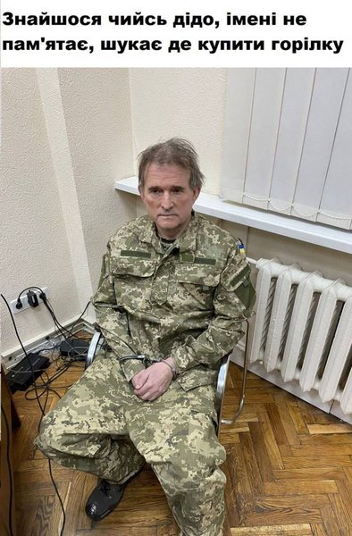 Служба безпеки України показала фото затриманого кума президента Росії Віктора Медведчука у формі ЗСУ та у наручниках. Соцмережі швидко відреагували жартами. Фокус представляє найяскравіші меми про цю подію.