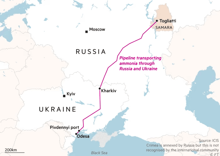 Поінформовані інсайдери стверджують, що якщо Україна та Росія підпишуть угоду про постачання аміаку, то Кремль щорічно продаватиме 2 млн тонн хімікатів на загальну суму $2,4 млрд. У матеріалі видання також сказано, що представники українського та російського урядів відмовилися коментувати інформацію ООН про проведення переговорів щодо експорту добрив.