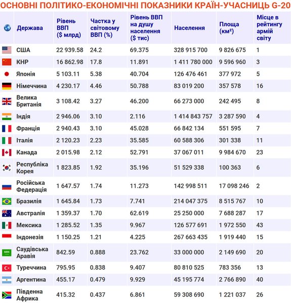 15-16 листопада на Балі відбудеться саміт G-20. Він обіцяє бути найбільш насиченим та напруженим за понад 20 років існування майданчика. Фокус розібрався в інтересах членів G-20 та в тому, яку позицію у питаннях глобального лідерства займає кожна країна.