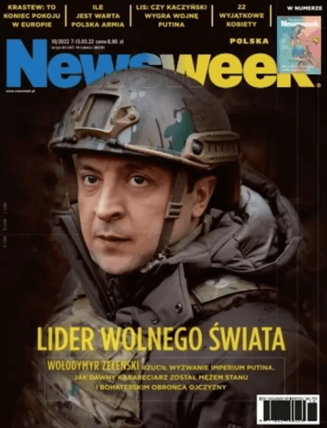 Польський Newsweek у березні 2022 року помістив на обкладинку фото Зеленського у військовій амуніції та назвав його лідером вільного світу.