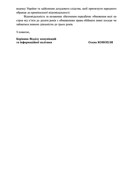 Санкція цієї статті — обмеження волі на строк до 10 років з обмеженням права обіймати певні посади або займатися певною діяльністю до трьох років.