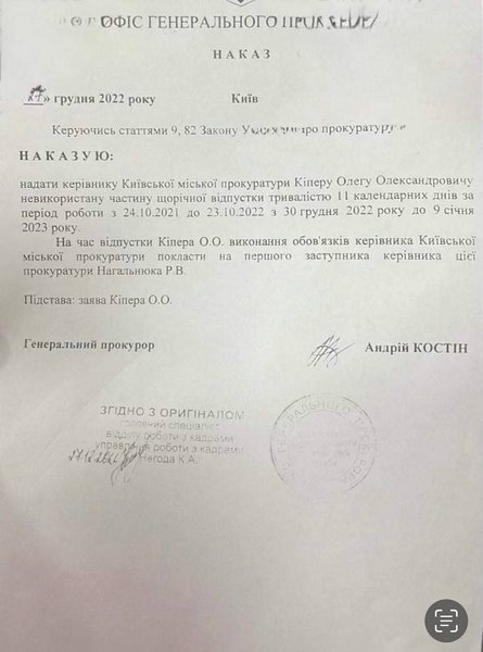 Глава столичної прокуратури зустрів новорічні свята за кордоном, — ЗМІ (документ)