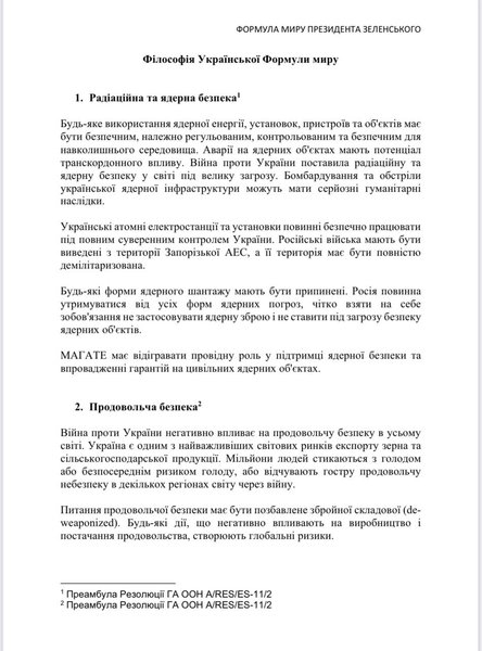 Офіс президента опублікував рамковий документ, який було представлено для обговорення. Єрмак додатково зазначив, що наступним етапом буде розробка необхідних документів, висновків і угод для реалізації кожного з десяти пунктів "формули".